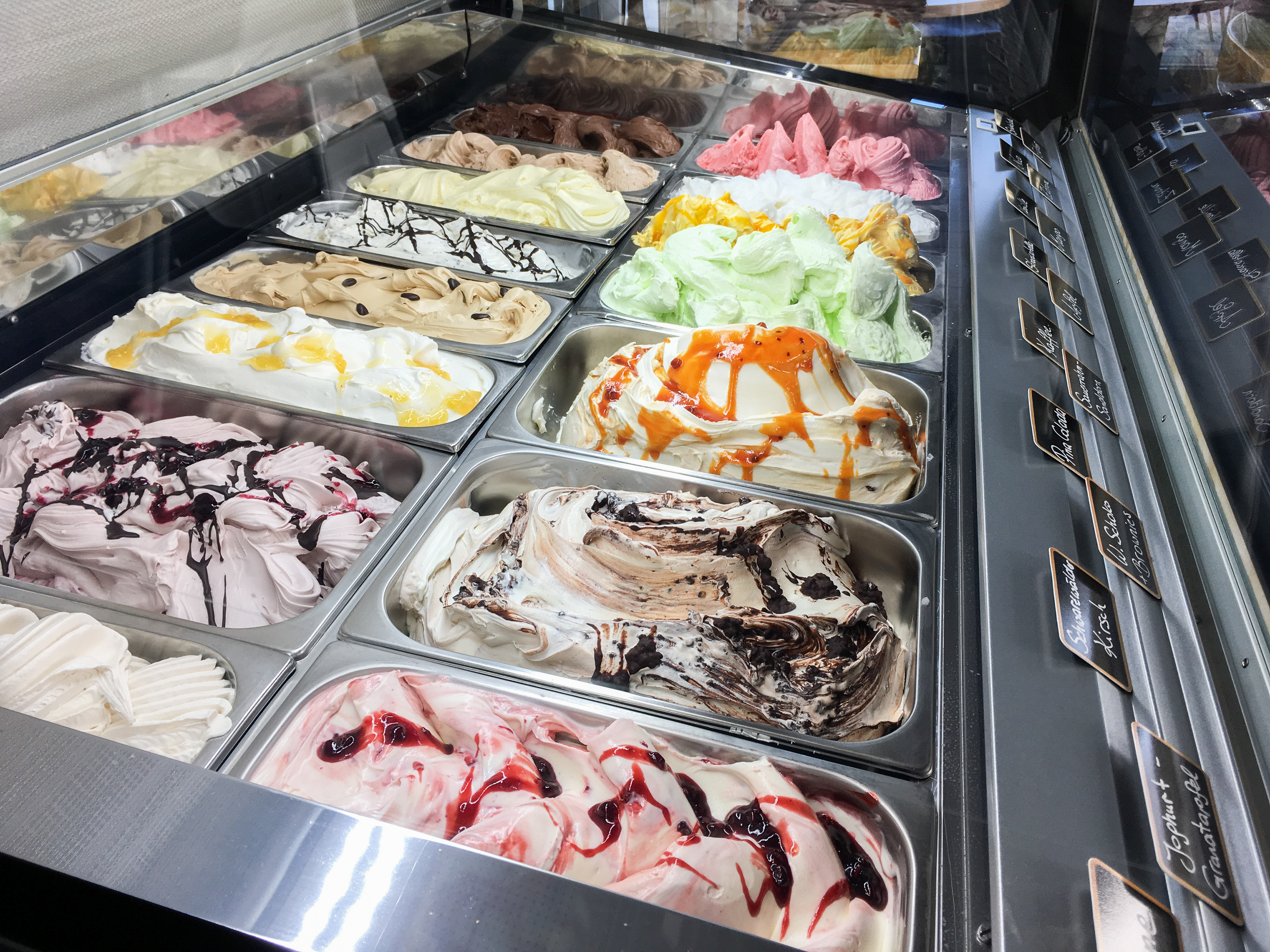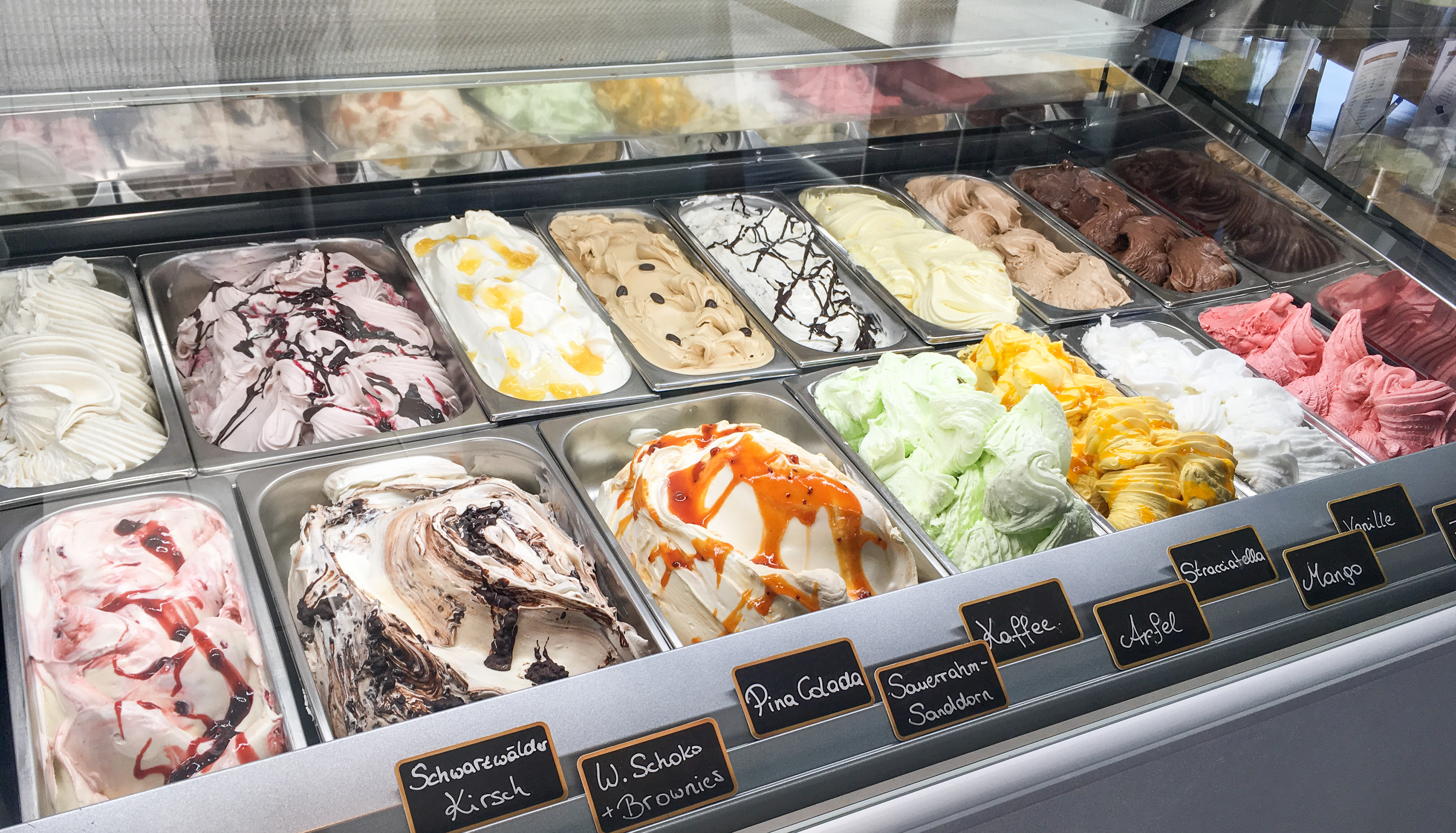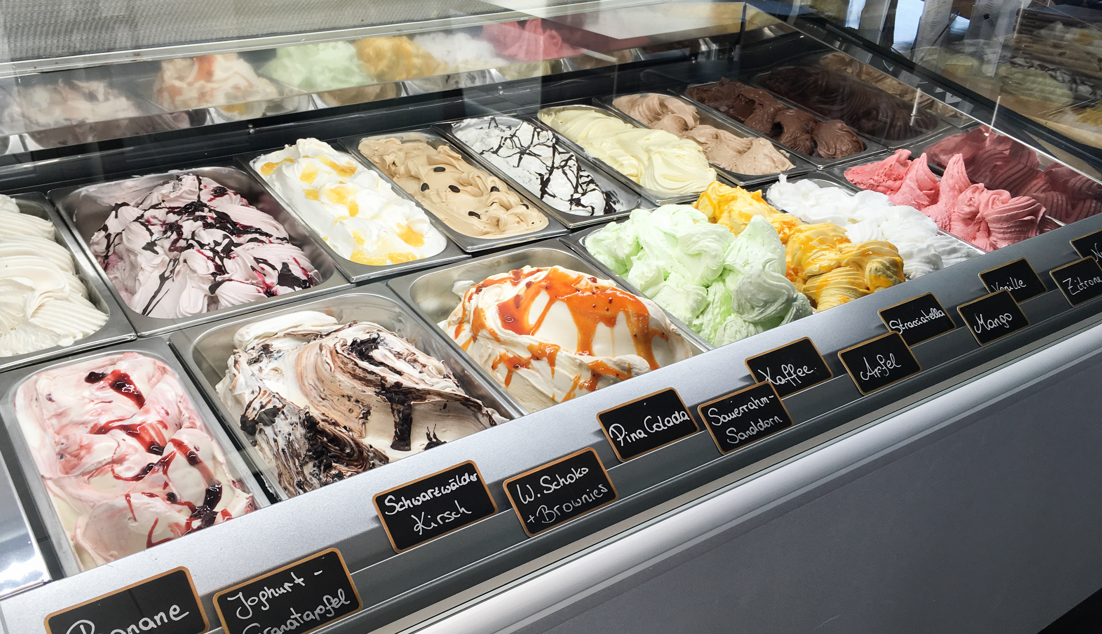 In der Sommersaison bieten wir Ihnen superleckeres Eis aus eigener Produktion, mit erfrischenden Sommersorten wie Pfirsich, Joghurt-Granatapfel, Sauerrahm-Sanddorn und Pina Colada aber natürlich auch mit bewährten Klassikern wie Vanille, Schoko, Stracciatella und Haselnuss. Unsere Fruchtsorten sind laktosefrei und vegan.